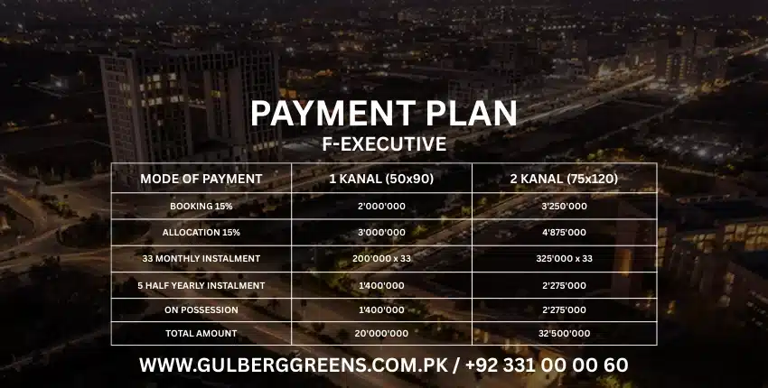 The Gulberg Greens Islamabad installment plan allows buyers to purchase residential plots through easy monthly and half-yearly payments instead of full upfront payment.